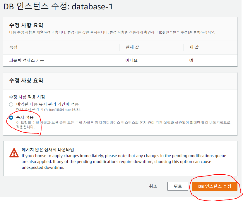 즉시 적용을 선택하고 수정 버튼을 누르면 끝이다.