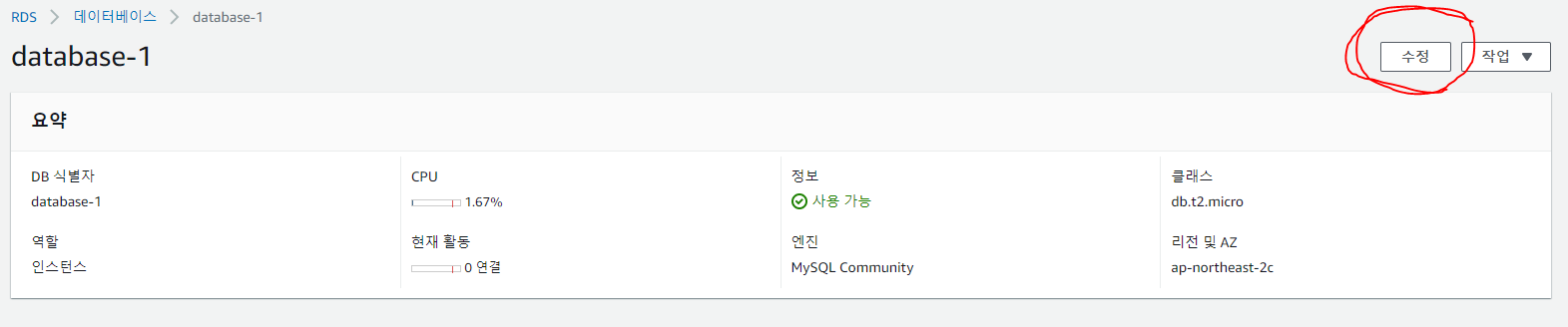 수정을 클릭한다.