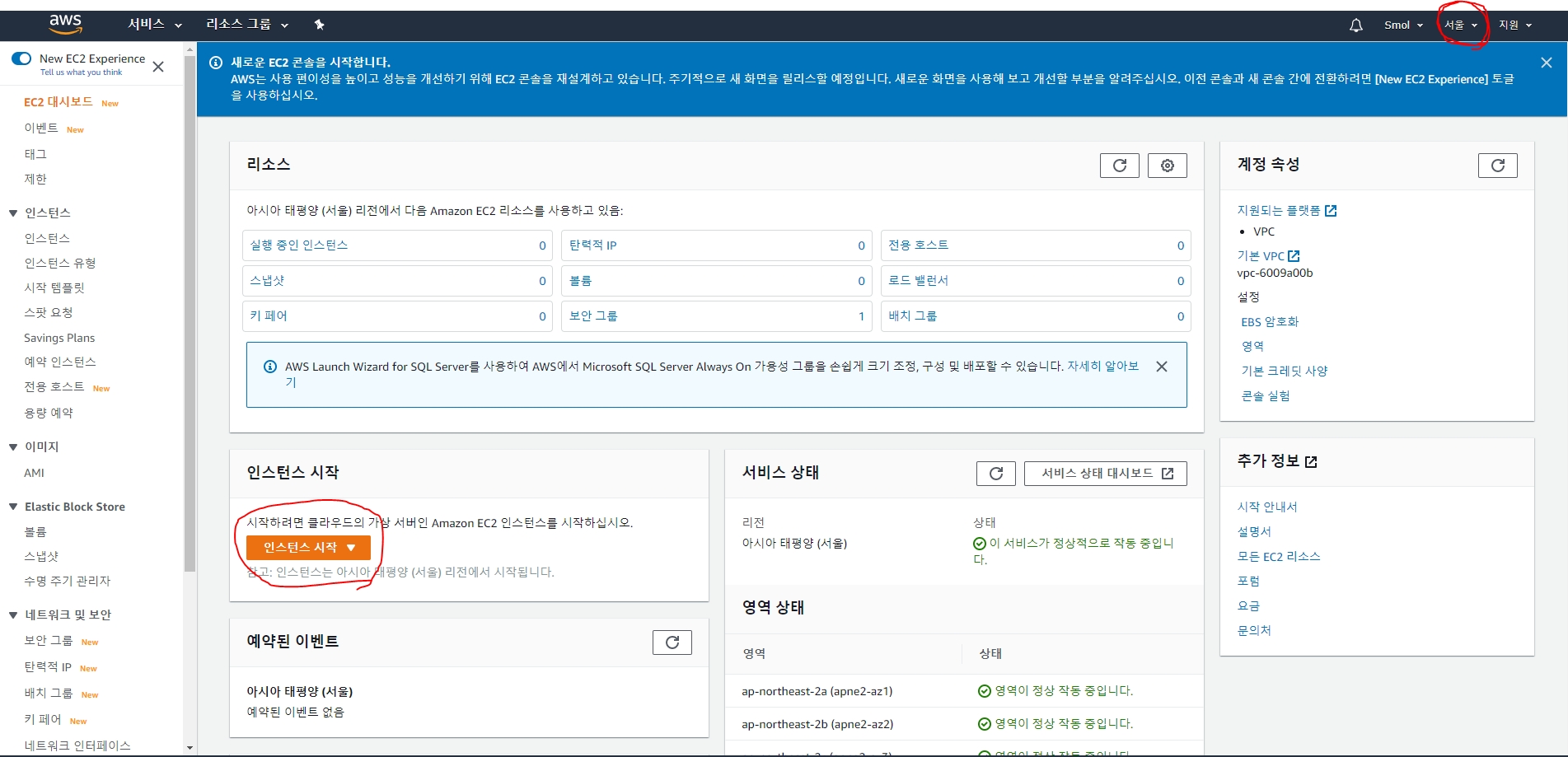 먼저 리전을 잘 확인하자. 나는 서울에 데이터베이스를 생성할 것이기 때문에 서울을 선택하고 데이터베이스 생성 버튼을 클릭한다.